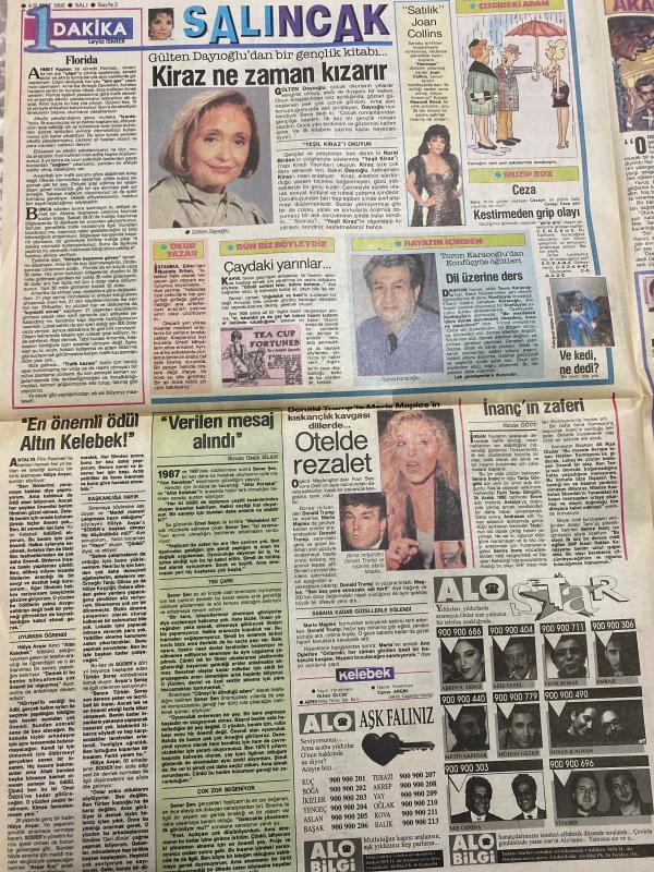 KELEBEK GAZETESİ DOĞUM GÜNÜ HEDİYESİ (TURKISH NEWSPAPPER) - 4 ŞUBAT 1992 - TAM TAKIM 4 SAYFADIR -Hülya Avşar-Şener Şen-İnanç-Ferit Tanju Gürsoy-Burçin Orhon-Priscilla Presley-Elvis Presley-Alara Koçibey-Gülten Dayıoğlu-Toron Karacaoğlu-Donald Trump-Marla Maples-Madonna-Jason Donovan-Kylie Minogue-Joan Collins-Cemal Dündar-Muzaffer Buyrukçu-Azize Bergin-Gündüz Tazmen-Muhteşem Nejad-Güzin Abla-Sinemanın en büyükleri-Verilen mesaj alındı-En önemli ödül Altın Kelebek-İnançın zaferi-Kiraz ne zaman kızar-Otelde rezalet-Her yönüyle Madonna-Orta öğretim sorunları-Akan sular şarap olsa-Bilmemek ayıp değil-En değerli besin Anne sütü-En seksi yuvarlaklar-Sevgi verin sağlıklısını verin adlı eser Türkçe dilindedir.