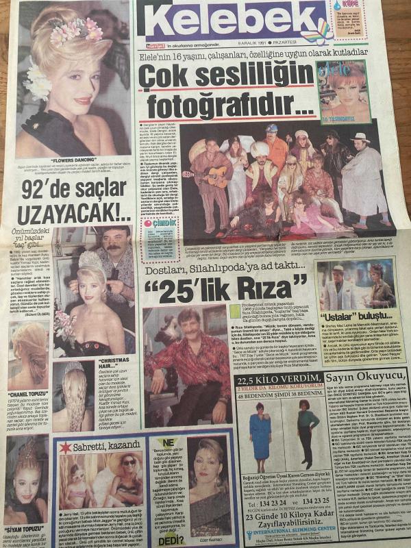 KELEBEK GAZETESİ DOĞUM GÜNÜ HEDİYESİ (TURKISH NEWSPAPPER) -9 ARALIK 1991 - TAM TAKIM 4 SAYFADIR -Jerry Hall-Aysu Barlas-Riza Silahpoda-Güler Kazmacı-Murat Aykaç-Erginöz-Cemal Dündar-Azize Bergin-Paulina Porizkova-Gündüz Tezmen-Zeynep Uğur-Muhteşem Nejad-Birgit Koseoglu-Seden Kızıltunç-Gene Wilder-Richard Pryor-Çok sesliliğin fotoğrafıdır-92’de saçlar uzayacak-25’lik Rıza-Sabretti kazandı-Tutku-Bilmemek ayıp değil-Stresin de çeşidi var-Paulina dillendi-Akdeniz’i kurtaralım-Memnunelik ruhumda var-Saf ikili-Sonbahar Yaprakları-Sigortalı Bebek Giysileri adlı eser Türkçe dilindedir.