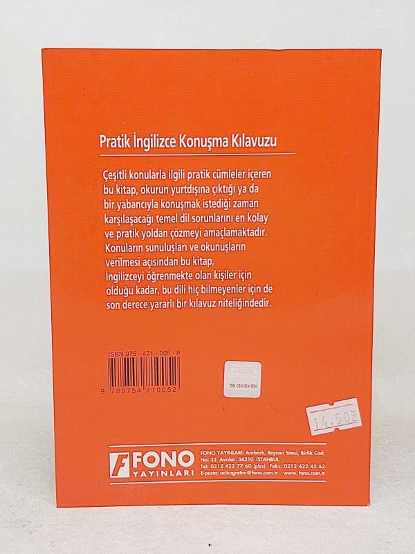 KENDİ KENDİNE PRATİK İNGİLİZCE KONUŞMA KILAVUZU / FONO PRACTICAL ENGLISH GUIDE, - tarafından kaleme alınmıştır. Kitap 2007 yılında FONO YAYINLARI tarafından [İSTANBUL] yayınlanmıştır. 407 sayfadır. KENDİ KENDİNE PRATİK İNGİLİZCE KONUŞMA KILAVUZU / FONO PRACTICAL ENGLISH GUIDE adlı eser İngilizce dilindedir.