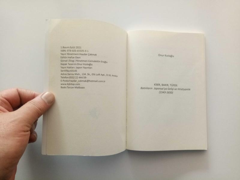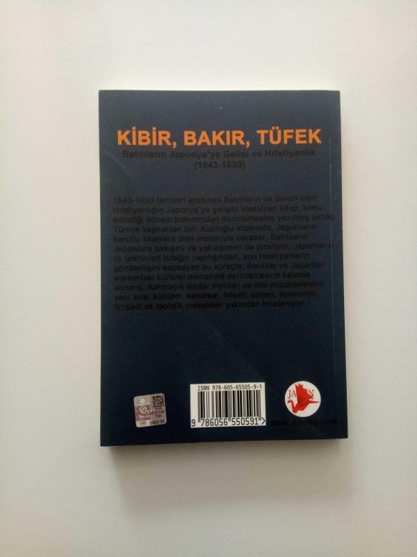 KİBİR, BAKIR, TÜFEK (BATILILARIN JAPONYA'YA GELİŞİ VE HRİSTİYANLIK 1543 - 1650) (YENİ), ONUR KIZILOĞLU tarafından kaleme alınmıştır. Eser HAFİZE EKEN editörlüğünde hazırlanmıştır. Kitap 2021 yılında JAPON YAYINLARI tarafından 978-605-65505-9-1 ISBN kodu ile yayınlanmıştır. Satışta olan kitap, yayınevinin 1. baskısıdır. 140 sayfadır. Sayfa bilgisi 2. HAMUR olarak belirtilmiştir. KİBİR, BAKIR, TÜFEK (BATILILARIN JAPONYA'YA GELİŞİ VE HRİSTİYANLIK 1543 - 1650) (YENİ) adlı eser Türkçe dilindedir.