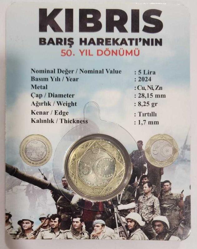 KIBRIS BARIŞ HAREKATI'NIN 50 YIL DÖNÜMÜ HATIRA 5 LİRA 2024 ÖZEL KARTINDA., 2 gün önce satışa sunulmuştur.