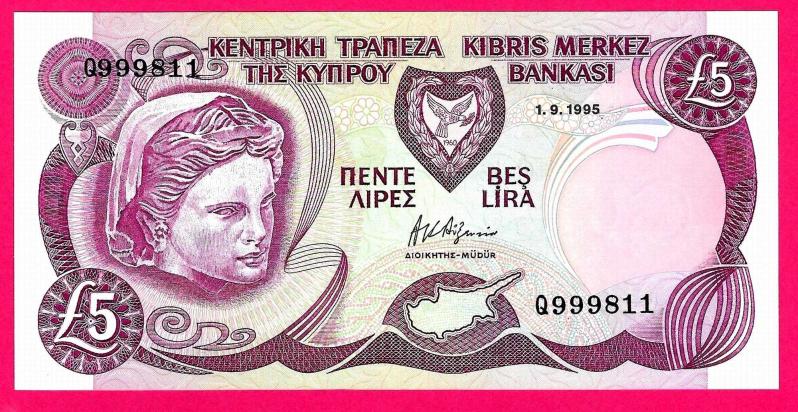 KIBRIS CYPRUS 5 Pounds, 1995 p54b UNC (TK16 721) ÇİL, 5 ay önce satışa sunulmuştur.