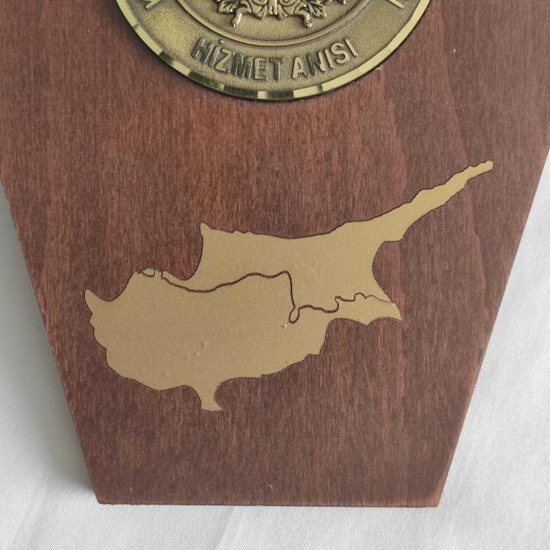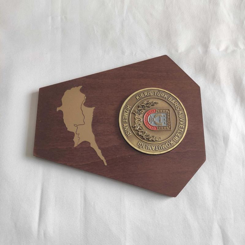 * * KIBRIS TÜRK BARIŞ KUVVETLERİ KOMUTANLIĞI Madalyon * * - Ahşap kaide üzerinde anı madalyonu. - Madalyon kaideye yapışık durumdadır. - Pirinç döküm materyal üzeri el boyama mine işçiliğe sahiptir. - Kaide ölçüsü: 15 x 17 x 0,7cm - Madalyon Çapı: 7 cm - Nadir bulunan, temiz, sağlam koleksiyonluk obje. - Kondisyon detaylı göstermeye çalıştığım fotoğraflardadır. -