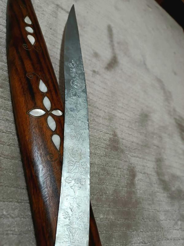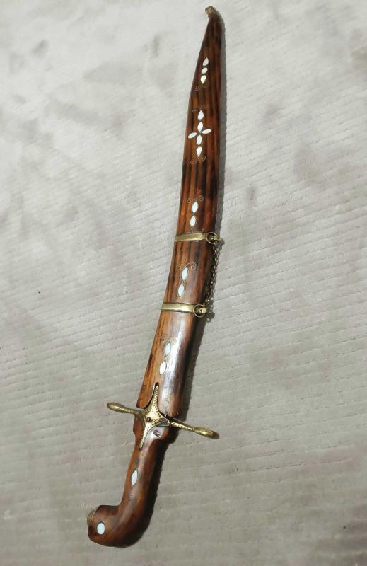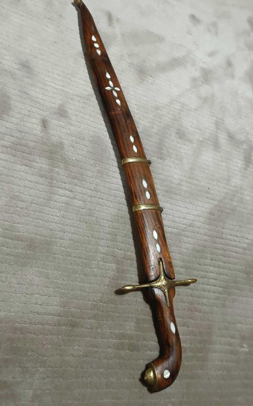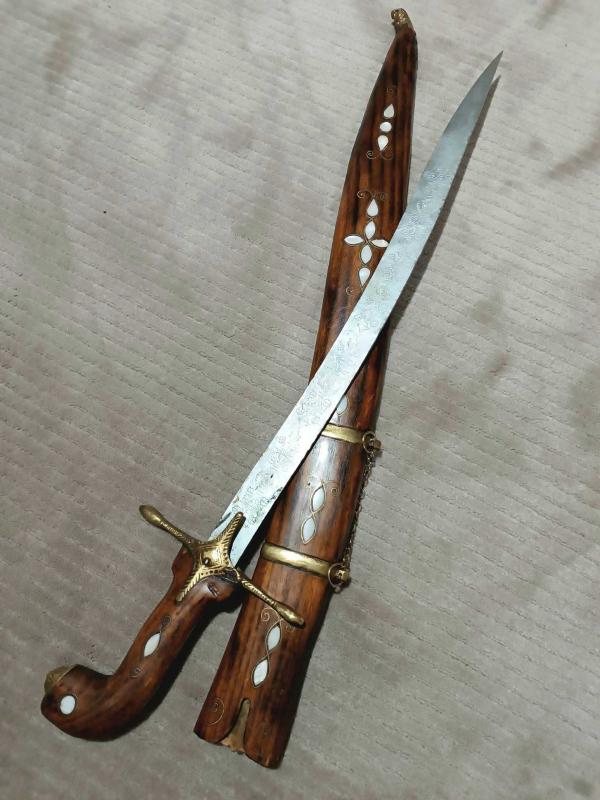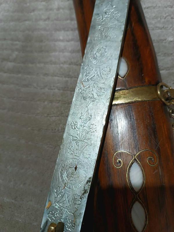KILIÇ, HANÇER, KAMA..Eski Antep işi Sedef kakma., 84 cm.