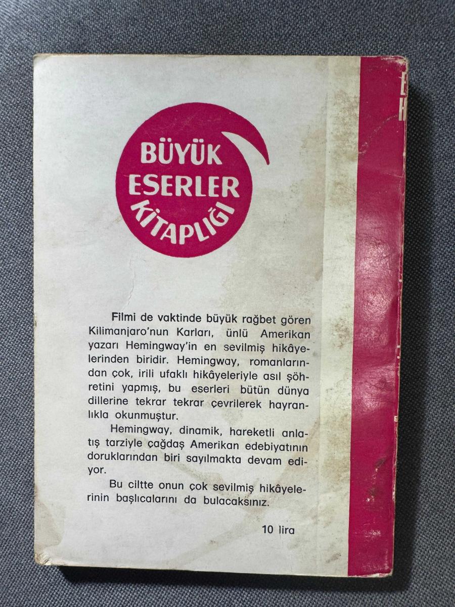 KİLİMANJARO'NUN KARLARI adlı eser, Kitap > Edebiyat, Kurgu > Roman > Dünya Edebiyatı kategorisinde İkinci El olarak satıştadır.