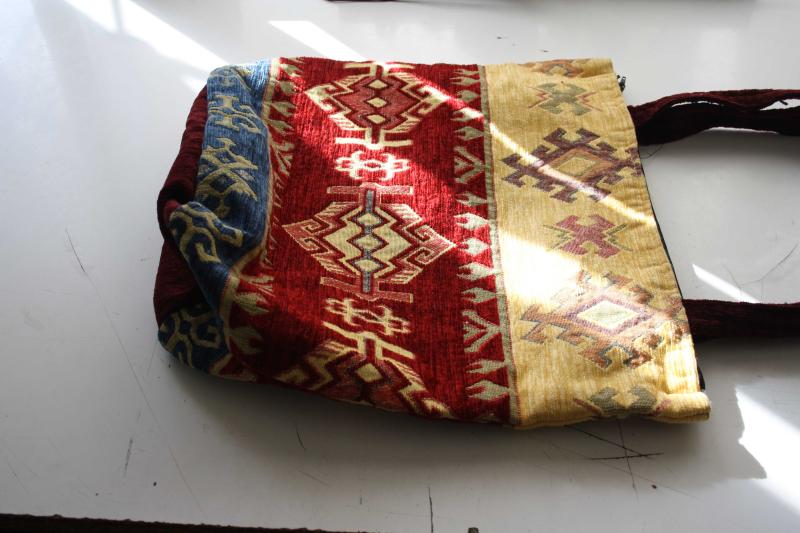 KİLİMDEN YAPILMIS ÇANTA VİNTAGE KOLLEKSİYON ÜRÜNÜ (İ6 KASA başlıklı antika/koleksiyon objesi Türkiye menşe’lidir. 2000 ve sonrası dönemine aittir.