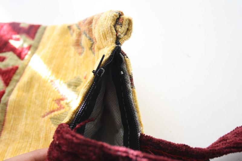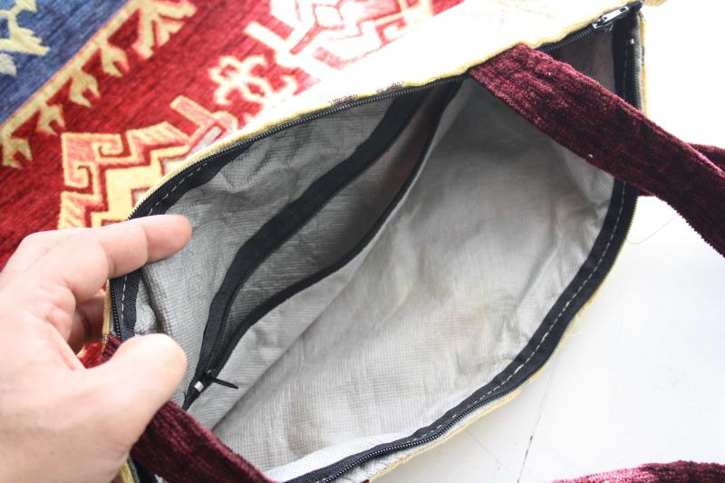 FERMUARINDA PROBLEM VARDIR HARICI SORUNSUZDUR HERHANGİ BİR TERZİ BASİTÇE FERMUARI YAPABILIR HALI KİLİMDEN YAPILMIS URUNDUR 37X41 CM
