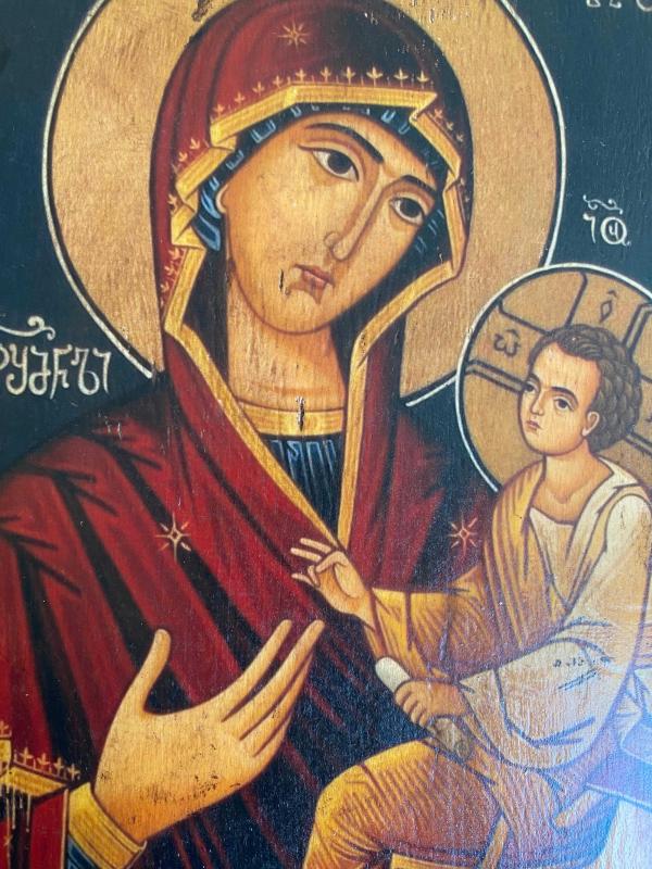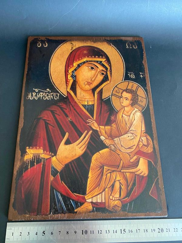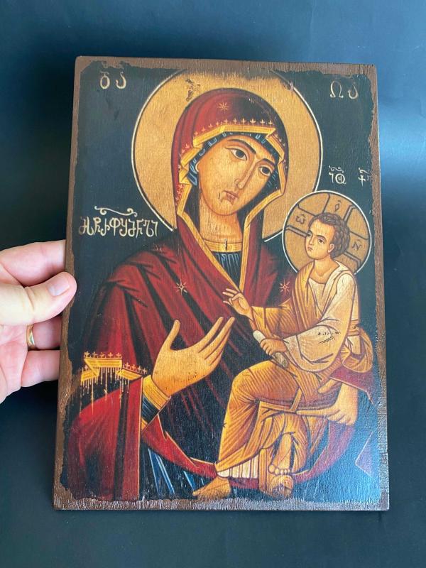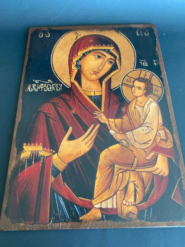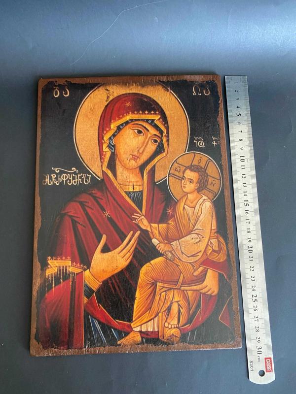 Kiliseden çıkma eski bir ahşap ikona. Temizliği, bakımı yapılmış olan duvara asılabilir, sergilenebilir. Antika değerinde ahşap ikona. Yurtdışından bize ulaştı. Avrupa’da bir kiliseden çıkma. Üstü cilalı bir tablo. Yağlı boya çalışarak yapılmış gibi ancak çok fazla resim uzmanlığımız yok. Bu nedenle en uygun bir fiyatla satışa sunuyoruz. . Ebat: 30 x 21 cm.