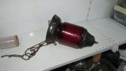 KIRMIZI CAMLI TENEKE METAL AY YILDIZ İŞLEMELİ KANDİL TARZI MUMLUK LAMBA OLABİLİR (ÇİFT TARAFLI RAF