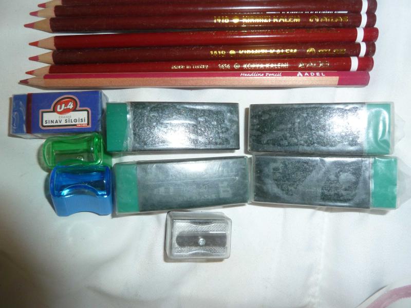 48 ADET ADEL FATİH ATLAS MARKA KIRMIZI KURŞUN KALEM 3 ADET KALEMTRAŞ BİRİ METAL FABER MARKA 2 DE YEDEK BIÇAĞI MEVCUT 6 ADET ÖZEL KALİTELİ FABER MARKA ÇİZİM SİLGİSİ ADINIZA FATURADA KESİLECEKTİR ARAS KARGO İLE GÖNDERİLECEK