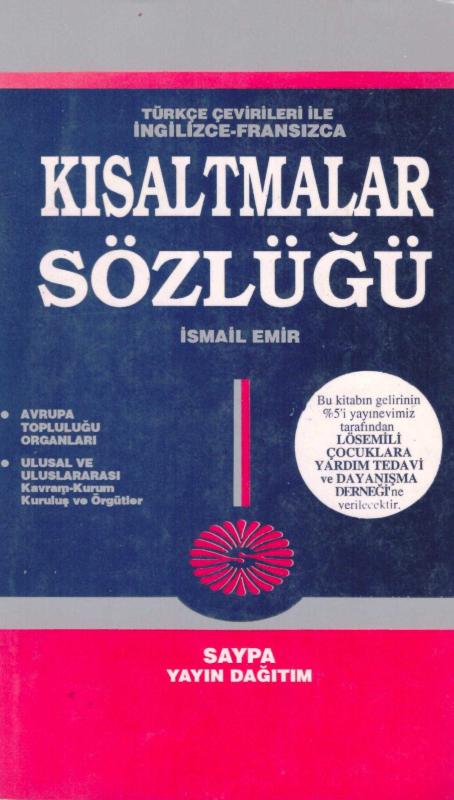 KISALTMALAR SÖZLÜĞÜ, İSMAİL EMİR tarafından kaleme alınmıştır. Kitap 1994 yılında SAYPA tarafından [ANKARA] yayınlanmıştır. 290 sayfadır. KISALTMALAR SÖZLÜĞÜ adlı eser Türkçe dilindedir.