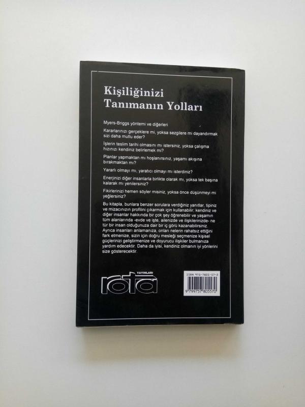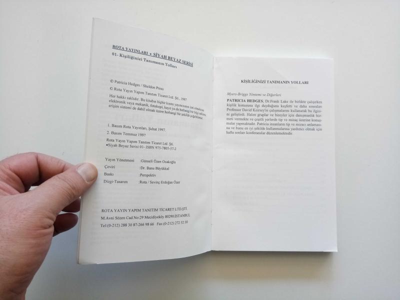 KİŞİLİĞİNİZİ TANIMANIN YOLLARI (KENDİNİZ OLMA LÜKSÜNÜ YAŞAYIN) (YENİ), PATRICIA HEDGES tarafından kaleme alınmıştır. Eser GÜNSELİ ÖZEN OCAKOĞLU editörlüğünde hazırlanmıştır. Kitap 1997 yılında ROTA YAYINLARI tarafından [İSTANBUL] 978-975-7805-57-2 ISBN kodu ile yayınlanmıştır. Satışta olan kitap, yayınevinin 2. baskısıdır. Bu baskının çevirisi DR. BANU BÜYÜKKAL tarafından yapılmıştır. 229 sayfadır. Sayfa bilgisi 1. HAMUR olarak belirtilmiştir. KİŞİLİĞİNİZİ TANIMANIN YOLLARI (KENDİNİZ OLMA LÜKSÜNÜ YAŞAYIN) (YENİ) adlı eser Türkçe dilindedir.