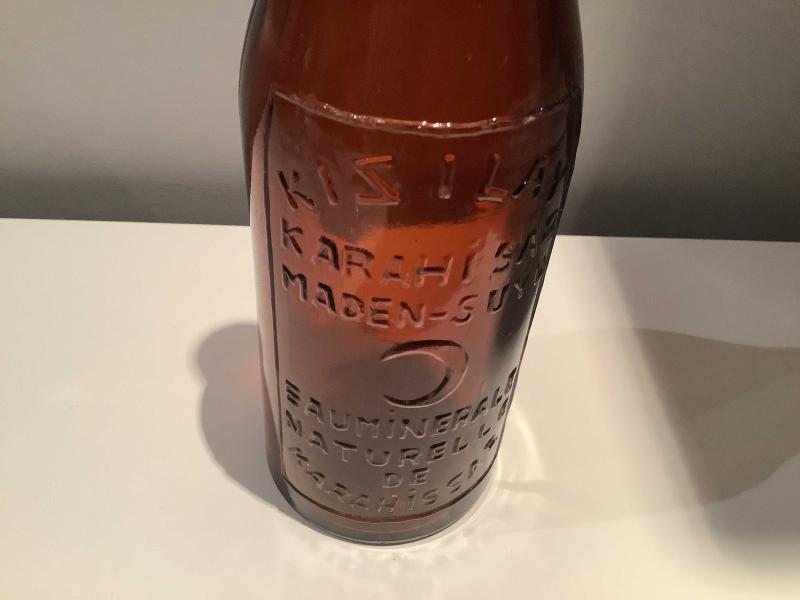 KIZILAY KARAHİSAR MADEN SUYU ŞİŞESİ başlıklı antika/koleksiyon objesi Türkiye menşe’lidir. 1960-1979 arası dönemine aittir.