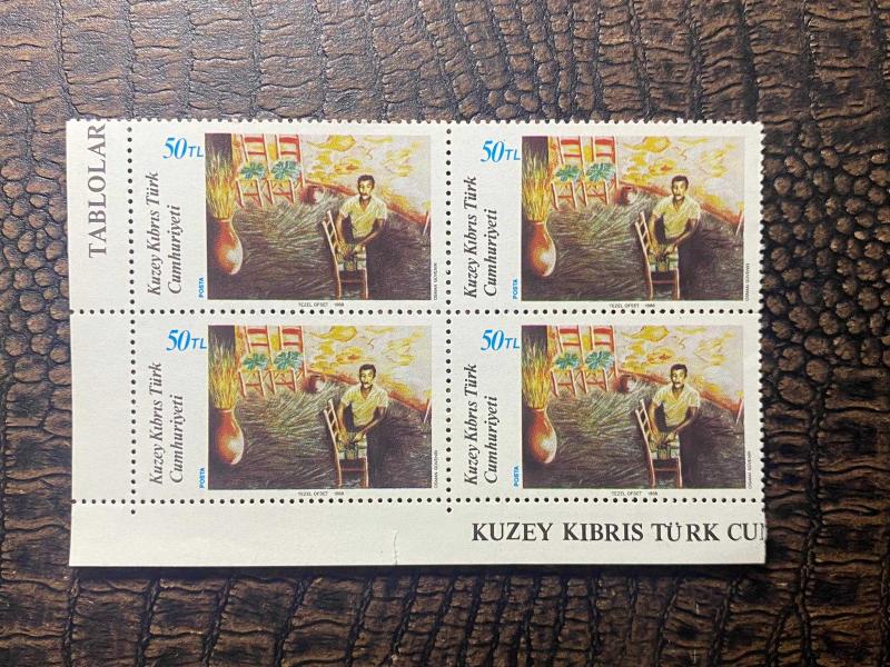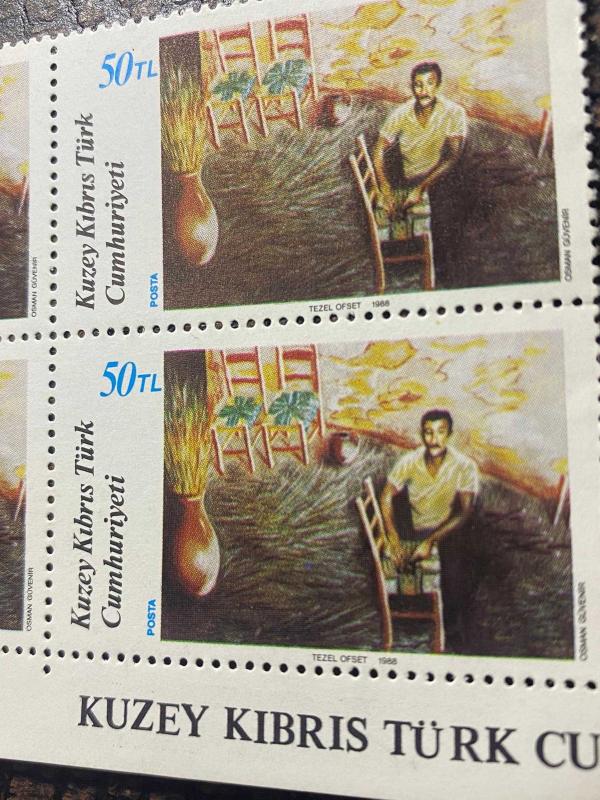 KKTC - KUZEY KIBRIS TÜRK CUMHURİYETİ KUZEY KIBRIS 220 - Osman Güvenir'in "Sandalye Dokumacısı" Damgasız MNH 4'lü Blok Pullar Haliyle Fotoğraftaki Ürün gönderilecektir