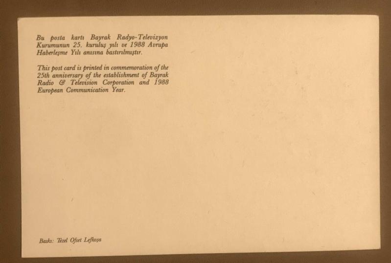 KKTC POSTA KARTI 1988- BAYRAK RADYO TELEVİZYON KURUMUNUN 25. YILI VE AVRUPA HABERLEŞME YILI ANISINA D7-1, 2 gün önce satışa sunulmuştur.