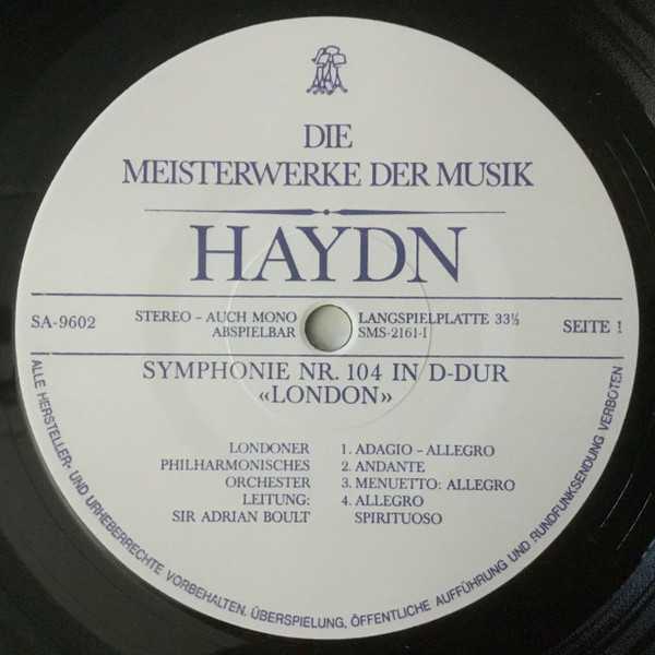 PLAK ÇOK TEMİZ.. Symphonie N°104 En Ré Majeur "Londres" A1 Adagio - Allegro A2 Andante A3 Menuetto : Allegro A4 Allegro Spirituoso Symphonie N°101 En Ré Majeur "Horloge" B1 Adagio - Presto B2 Andante B3 Menuetto : Allegro B4 Finale : Vivace