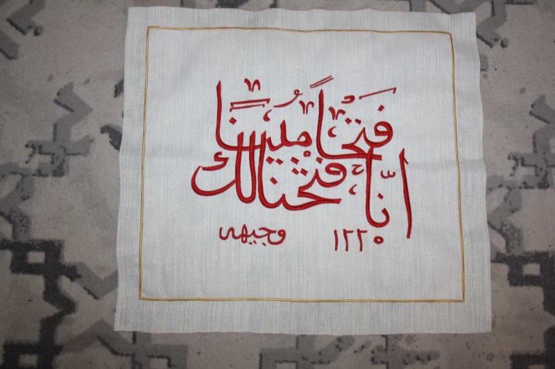 KLASİK OSMANLI HAT SANATI FETİH SURESİ VECİHİ 1335 İĞNE İŞİ ÖZEL ÜRETİM ÖZEL BİR ÜRÜN TAM TABLO İÇİ UYGUN başlıklı antika/koleksiyon objesinin menşei belirtilmemiştir. Objenin ait olduğu dönem bilinmeketedir.