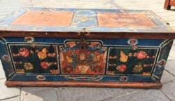 KOK BOYA ÇEŞİTLİ OSMANLI MOTİF VE DESENLERLE BEZELİ AHŞAP KAPAKLI OSMANLI SANDIK