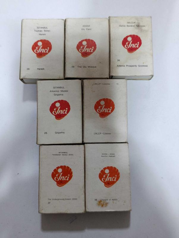 KOLEKSİYONLUK 7 ADET İNCİ MARKA KİBRİT başlıklı antika/koleksiyon objesinin menşei belirtilmemiştir. 1940 sonrası dönemine aittir.