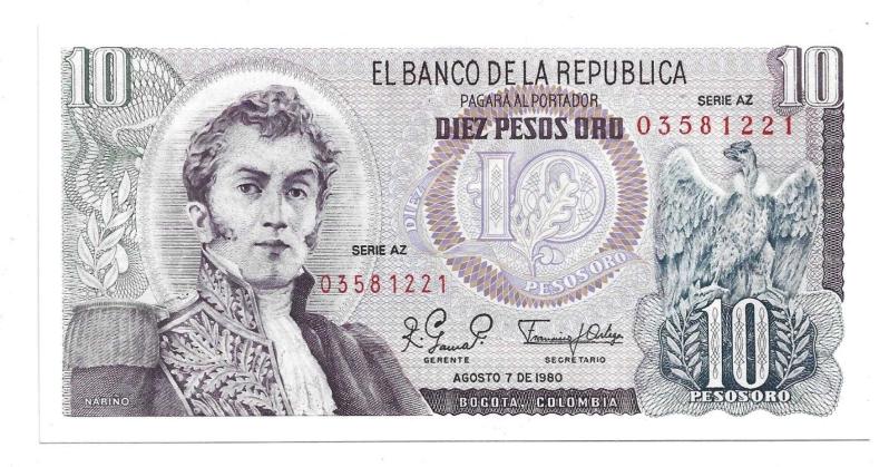 KOLOMBİYA ( 10 * PESOS ORO ) 1980 - ÇİL ** RESİMDEKİ ÜRÜN SATIŞTADIR **