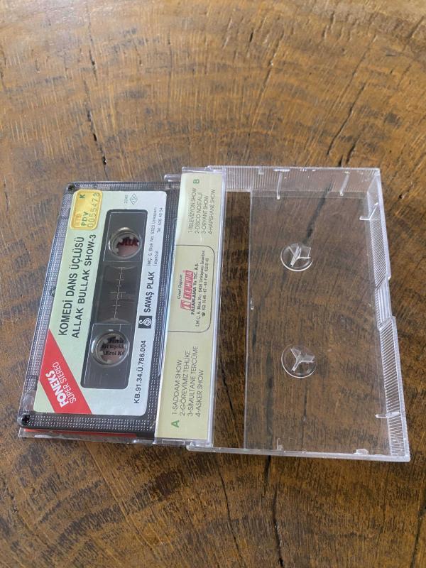 KOMEDİ DANS ÜÇLÜSÜ - ALLAK BULLAK SHOW 3 - KASET 1991 - SAVAŞ PLAK A1 Saddam Show A2 Görevimiz Tehlike A3 Simultane Tercüme A4 Asker Show B1 Televizyon Show B2 Disco Nostalji B3 Oryant Show B4 Hapishane Show