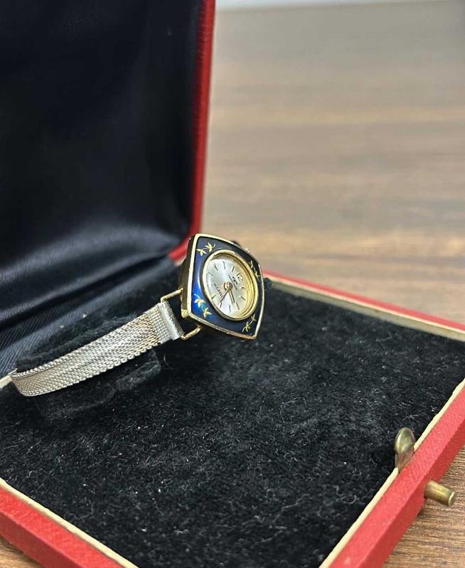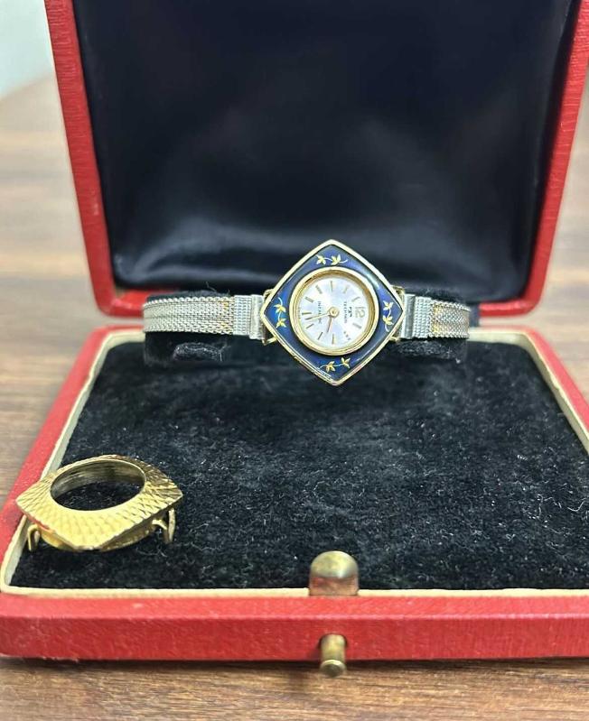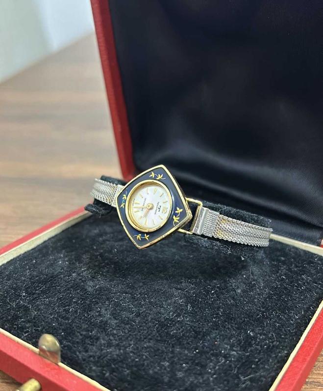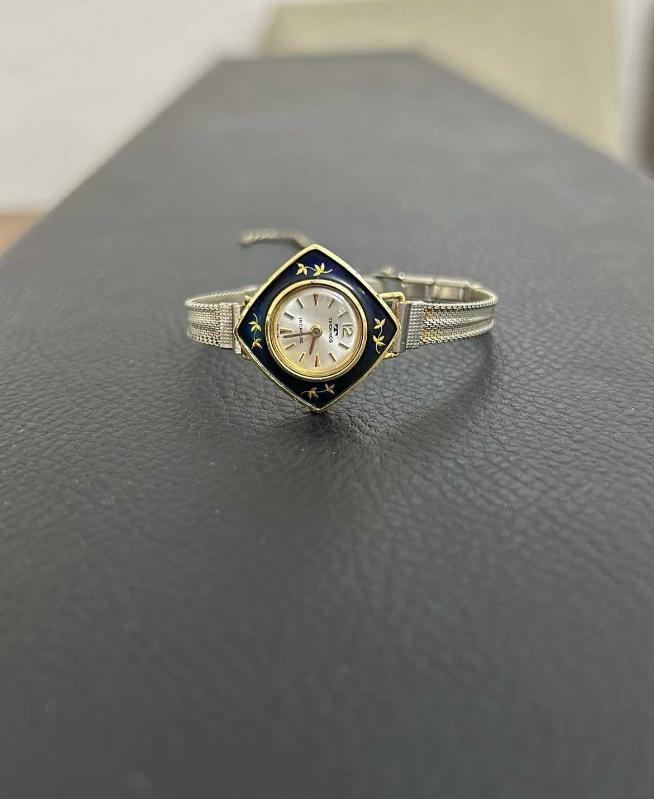 KOMPLE GÜMÜŞ KORDONLU ALTIN MİNELİ KURMALI KADIN KOL SAATİ başlıklı ürün, Antika-Koleksiyon, Hobi-Sanat > Koleksiyon Objeleri > Eski Orijinal Saatler kategorisinde İkinci El olarak satışa sunulmuştur.