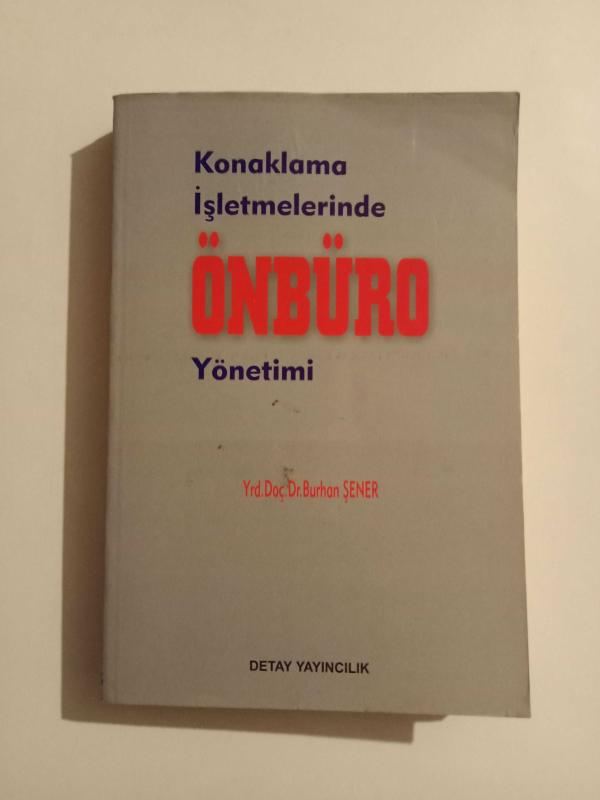 KONAKLAMA İŞLETMELERİNDE ÖNBÜRO YÖNETİMİ, BURHAN ŞENER tarafından kaleme alınmıştır. Kitap 2001 yılında DETAY YAYINCILIK tarafından [ANKARA] yayınlanmıştır. Satışta olan kitap, yayınevinin 1. baskısıdır. 411 sayfadır. KONAKLAMA İŞLETMELERİNDE ÖNBÜRO YÖNETİMİ adlı eser Türkçe dilindedir.