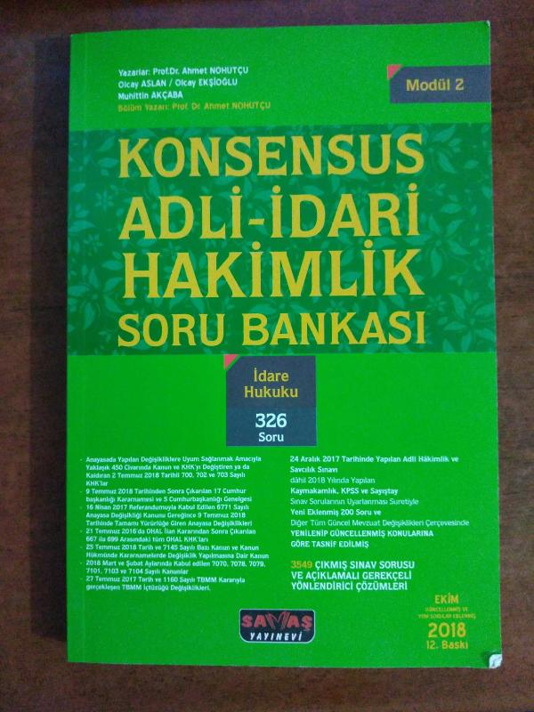 KONSENSUS ADLİ-İDARİ HAKİMLİK SORU BANKASI ANAYASA HUKUKU MODÜL 2 - İKİNCİ EL, AHMET NOHUTÇU-OLCAY ASLAN-OLCAY EKŞİOĞLU - MUHİTTİN AKÇABA tarafından kaleme alınmıştır. Kitap 2018 yılında SAVAŞ YAYINEVİ tarafından yayınlanmıştır. Satışta olan kitap, yayınevinin 12. baskısıdır. 275 sayfadır. KONSENSUS ADLİ-İDARİ HAKİMLİK SORU BANKASI ANAYASA HUKUKU MODÜL 2 - İKİNCİ EL adlı eser Türkçe dilindedir.