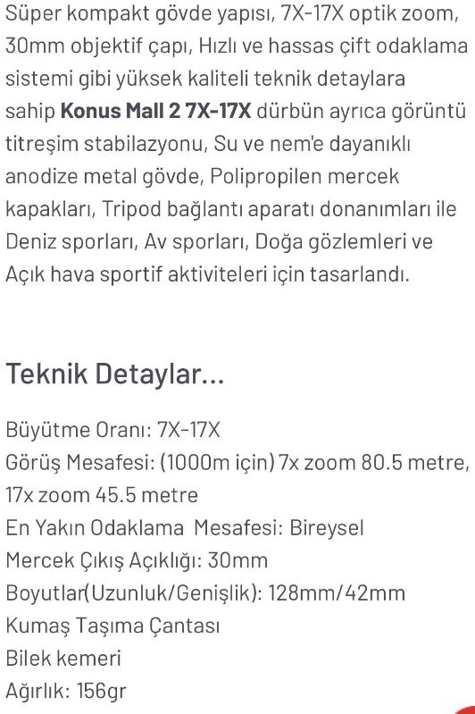 KONUS-KONUSMALL-2 2062 # 7-17x30 Çok Kaliteli Menşei:İTALYA Özellikli DÜRBÜN YENİ AYARINDADIR ve Kozmetiği Yüzde Doksandokuz… Kendime ait ürünüm Deneme amaçlı üçbeş defa kullandım.(((Kalitesiyle Km lerce öteyi bile Büyüterek yakınlaştırır Net gösterir)))