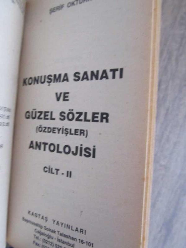 KONUŞMA SANATI VE GÜZEL SÖZLER ( ÖZDEYİŞLER ) ANTOLOJİSİ (2 CİLT) ve ALTIN ÖZDEYİŞLER VE ÖĞÜTLER adlı eser, Kitap > Edebiyat, Kurgu > Antoloji kategorisinde İkinci El olarak satıştadır.