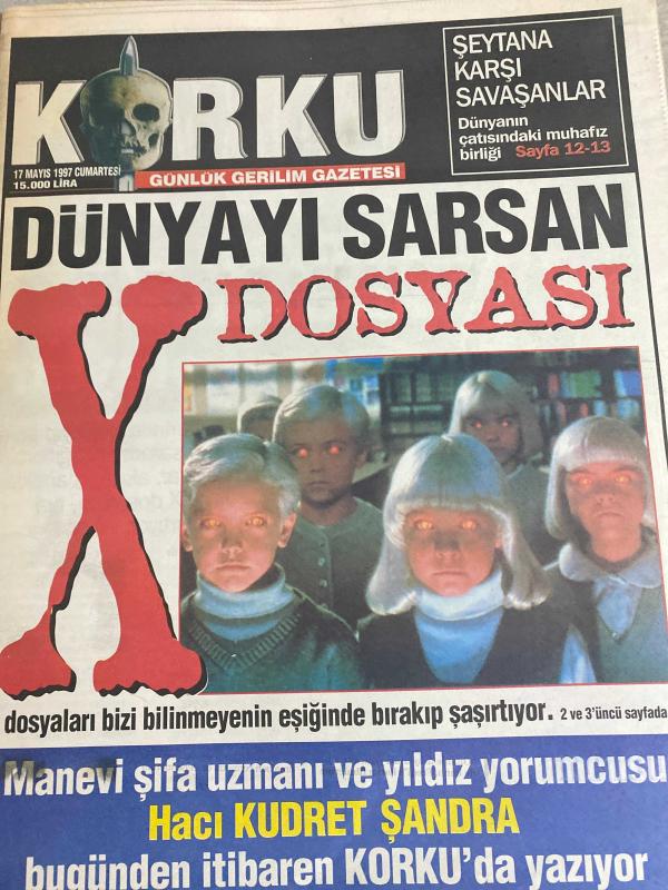 KORKU GAZETESİ DOĞUM GÜNÜ HEDİYESİ -17 MAYIS 1997 - Manevi şifa uzmanı ve yıldız yorumcusu hacı kudret Sandra bugünden itibaren korkuda yazıyor-dünyayı ayağa kaldıran gizemli olaylar-metrelerce yükseklikten düştüler ama ölmediler onları kimler koruyor-aksakallı dede-kanatlı melek-Kemal’i cinler öldürdüğü-Sümbül Efendi türbesi şifa dağıtıyor-kısmet açtıran türbe-madenleri kölesi yapan adam-kendisini bir uzaylı olduğunu ve dünyayı kurtarmaya geldiğini söylüyordu-zaman tünelde garip kayboluş- Beni vuracaklar-şeytana karşı Savaşanlar-dünyanın çatısındaki muhafız birliği-büyücü-Atilla Solaker-öldürülen Peter curran-ölü koca geri dönüp karısına katillerini anlattı mezardan gelen itiraf-manken Gizem Özdil‘in en büyük korkusu karanlık evin bütün ışıklarını yakar öyle yatarım adlı eser Türkçe dilindedir. Eserin içeriğinde Türkçe dilinde bölümlere de yer verilmektedir.