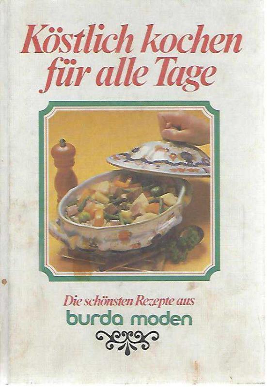 KÖSTLİCH KOCHEN FÜR ALLE TAGE, DİE SCHÖNSTN REZEPTE AUS tarafından kaleme alınmıştır. Kitap 1978 yılında BURDA MODEN tarafından [GERMANY] yayınlanmıştır. 491 sayfadır. KÖSTLİCH KOCHEN FÜR ALLE TAGE adlı eser Almanca dilindedir.