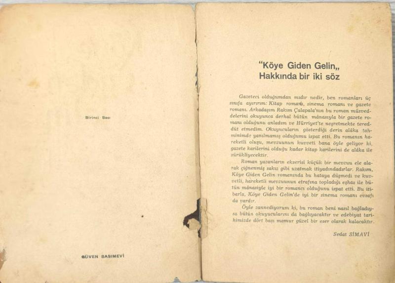 KÖYE GİDEN GELİN – Rakım Çalapala | Güven Basımevi Birinci Baskı Nadir Erken Dönem Roman adlı eser, Kitap > Edebiyat, Kurgu > Roman > Türk Edebiyatı kategorisinde İkinci El olarak satıştadır.