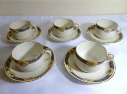 Porselen çay fincanı 5 kişilik. Alman menşei. 19 Y.y. KPM damgalı. Kondisyonu iyi. Fincan Y:6 cm. Ağız çapı:8 cm. Tabak çapı:14,5 cm .
