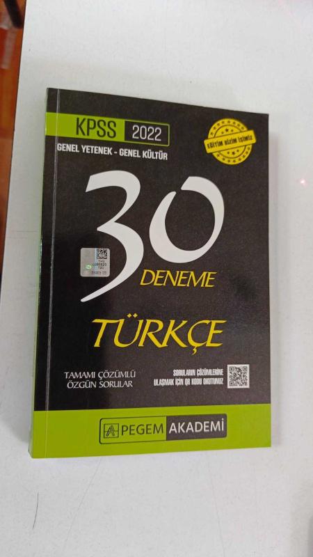 KPSS 2022 genel yetenek genel kültür 30 deneme Türkçe tamamı çözümlü pegem akademi adlı eser, Kitap > Sınav ve Ders Kitapları > Sınavlara Hazırlık kategorisinde İkinci El olarak satıştadır.
