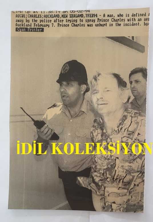 KRAL III. CHARLES'A YAPILAN SALDIRIRNIN (CHARLES PHILIP ARTHUR GEORGE) ORİJİNAL 2''Lİ HABER AJANSI BASIM FOTOĞRAF SETİ (KAĞIT BASKI) - NEWS AGENCY PHOTO (PAPER PRINT) OF CHARLES III, (CHARLES PHILIP ARTHUR GEORGE) - 21 x 15 cm ve 19 x 16 cm EBADINDA - KİMLİĞİ BELİRSİZ BİR ADAM, 7 ŞUBAT 1994 PAZARTESİ GÜNÜ, İNGİLİZ TAHTININ VARİSİ PRENS CHARLES'IN SEVENLERİYLE SOHBET ETTİĞİ SIRADA, KENDİSİNE AEROSOL SPREY SIKMAYA KALKIŞTIKTAN SONRA POLİS TARAFINDAN GÖZALTINA ALINDI. ADAM, PAZARTESİ GÜNÜ AUCKLAND SAHİLİNDEKİ WHİTBREAD YACHTS'TA YAPTIĞI YÜRÜYÜŞÜN ARDINDAN PRENS CHARLES'A 3 METRE KADAR YAKLAŞTI. - AN UNIDENTIFIED MAN IS TAKEN AWAY BY POLICE AFTER ATTEMPTING TO SPRAY PRINCE CHARLES WITH AN AEROSOL SPRAY CAN, AS THE HEIR TO THE BRITISH THRONE CHATTED WITH WELLWISHERS MONDAY, FEB. 7, 1994. THE MAN GOT WITHIN 10 FEET PF PRINCE CHARLES, AFTER HIS WALK ROUND THE WHITBREAD YACHTS ON AUCKLAND'S WATERFRONT, MONDAY., en son bir ay önce güncellenmiştir.