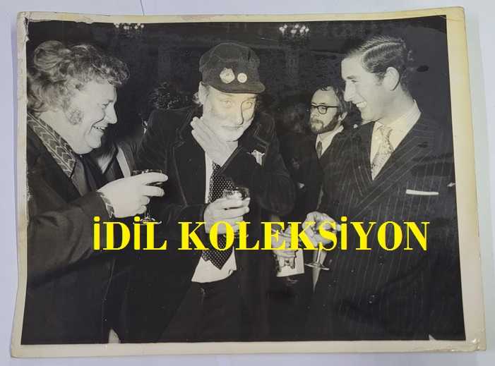 KRAL III. CHARLES'IN (CHARLES PHILIP ARTHUR GEORGE) ORİJİNAL FOTOĞRAFI - ORIGINAL PHOTOGRAPH OF CHARLES III, (CHARLES PHILIP ARTHUR GEORGE) - 20 x 15 cm EBADINDA - PRENS CHARLES, HARRY SECOMBE ve SPIKE MILIGAN SOHBET EDERLERKEN - (THE SCENE THE ECCENTRICS CLUB (WHERE ELSE?) THE TIME: THURSDAY NIGHT (29-11-1973). THE CAST TWO GOONS AND ONE PRINCE OF WALES. THE CONVERSATION... HARRY SECOMBE (LEFT): ''WHAT DO YOU THINK OF ME NEW SUEDE SHOES?'' SPIKE MILIGAN (CENTRE): ''YOU MEAN THOSE ARE SHOES, SHORTIE? I THOUGHT THEY WERE THIGH BOOTS.'' PRINCE CHARLES: ''THIGH NO MORE.'' THE TRIO MET AT A PARTY IN LONDON TO LUNCH THE SECOND BOOK OF GOON SHOW RADIO SCRIPTS. 30th NOVEMBER 1973) - ÖZEL ARŞİV, 4 gün önce satışa sunulmuştur.