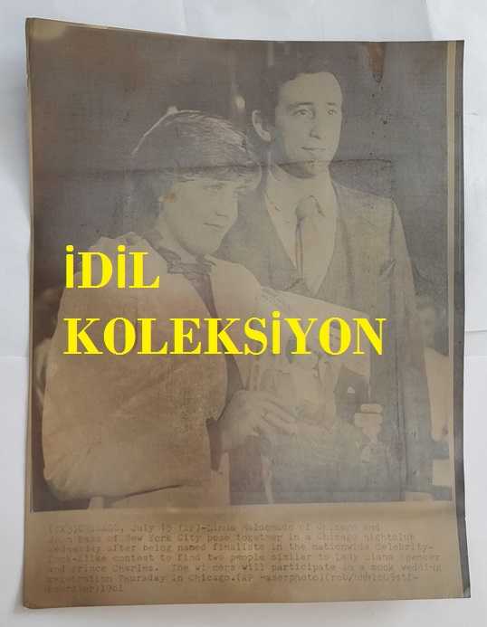 KRAL III. CHARLES'IN (CHARLES PHILIP ARTHUR GEORGE) PRENSES DIANA İLE ORİJİNAL HABER AJANSI BASIM FOTOĞRAFI - NEWS AGENCY PHOTO OF CHARLES III, (CHARLES PHILIP ARTHUR GEORGE) - 21 x 20 cm EBADINDA - CHİCAGO'DAN LİNDA MALDONADO VE NEW YORK'TAN JOHN BASS, LADY DİANA SPENCER VE PRENS CHARLES'A BENZEYEN İKİ KİŞİYİ BULMAK AMACIYLA DÜZENLENEN ÜLKE ÇAPINDAKİ ÜNLÜ BENZERLERİ YARIŞMASI'NDA FİNALİST SEÇİLDİKTEN SONRA ÇARŞAMBA GÜNÜ CHİCAGO'DAKİ BİR GECE KULÜBÜNDE BİRLİKTE POZ VERDİLER. 1981. - (LINDA MALDONADO OF CHICAGO AND JOHN BASS OF NEW YORK CITY POSE TOGETHER IN A CHICAGO NIGHTCLUB WEDNESDAY AFTER BEING NAMED FINALIST IN THE NATIONWIDE CELEBRITY LOOK-ALIKE CONTEST TO FIND TWO PEOPLE SMILAR OF LADY DIANA SPENCER AND PRINCE CHARLES. 1981.) başlıklı ürün, Efemera, Müzik, Sinema > Fotoğraflar > Diğer kategorisi altında İkinci El olarak satılmaktadır.