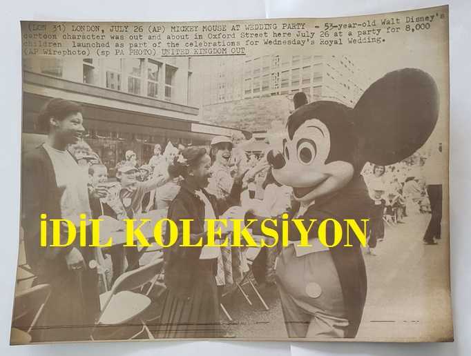 KRAL III. CHARLES'IN (CHARLES PHILIP ARTHUR GEORGE) PRENSES DIANA İLE ORİJİNAL HABER AJANSI BASIM FOTOĞRAFI - NEWS AGENCY PHOTO OF CHARLES III, (CHARLES PHILIP ARTHUR GEORGE) - 23 x 17 cm EBADINDA - 53 YAŞINDAKİ WALT DİSNEY'İN ÇİZGİ FİLM KARAKTERİ, ÇARŞAMBA GÜNÜ GERÇEKLEŞEN KRALİYET DÜĞÜNÜ KUTLAMALARININ BİR PARÇASI OLARAK DÜZENLENEN VE 8.000 ÇOCUĞUN KATILDIĞI BİR PARTİDE, 26 TEMMUZ'DA OXFORD CADDESİ'NDE BOY GÖSTERDİ. - (53-YEAR-OLD WALT DISNEY'S CARTOON CHARACTER WAS OUT AND ABOUT IN OXFORD STREET HERE JULY 26 AT A PARTY FOR 8,000 CHILDREN LAUNCHED AS PART OF THE CELEBRATIONS FOR WEDNESDAY'S ROYAL WEDDING.), en son bir ay önce güncellenmiştir.