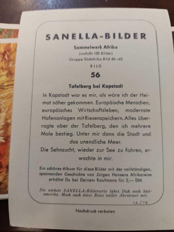 KRT147----SANELLA-BILDER AFRİKA KARTI --CAPE DOWN MASA DAĞI NO 56, en son 6 ay önce güncellenmiştir.