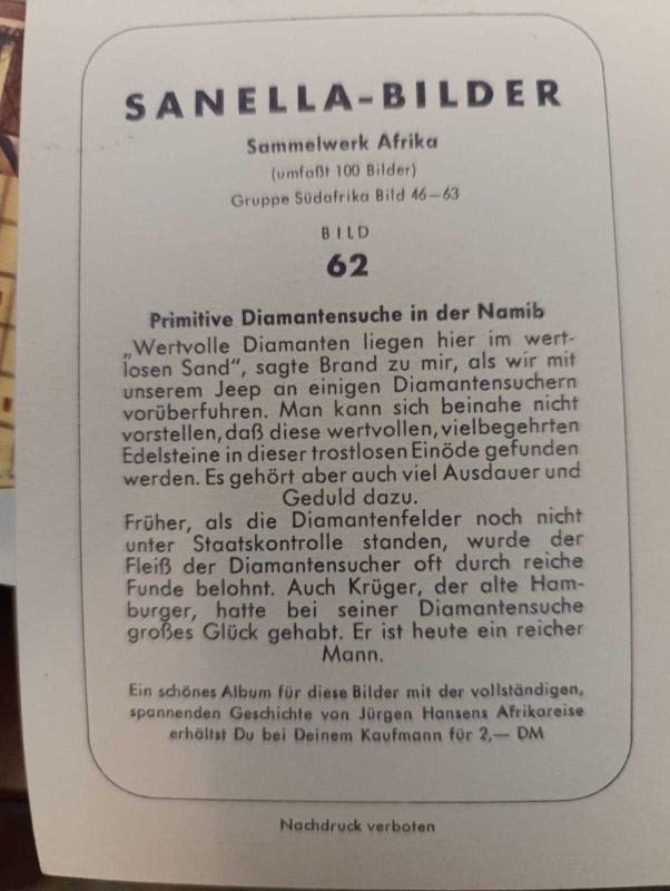 KRT147----SANELLA-BILDER AFRİKA KARTI --NAMİBYA ELMAS ARAMASI NO 62, en son 6 ay önce güncellenmiştir.