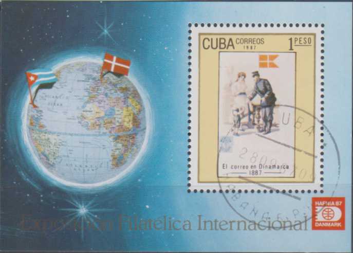 KÜBA HATIRA BLOK PUL 1980 - DANİMARKA HAFNIA ULUSLARARASI FİLATELİ SERGİSİ - POSTACI TEMALI. DAMGALI., 1 yıl önce satışa sunulmuştur.