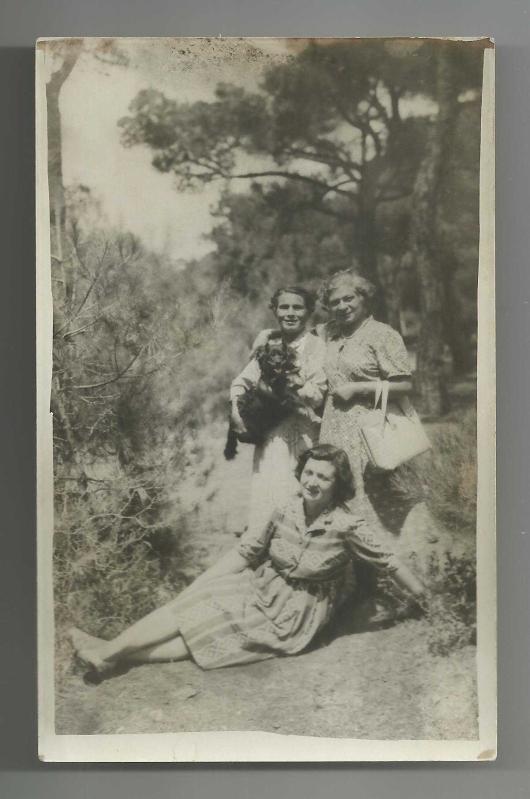 ** KUCAKTA KÖPEK VE KADINLAR TEMALI ESKİ FOTOĞRAF ** 14 x 9 cm.ebadında,arkası yazısız,gayet iyi kondüsyonda orijinal fotoğraf...