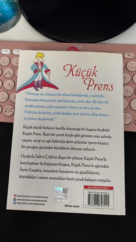 KÜÇÜK PRENS - ORJİNAL DİLDEN TAM ÇEVİRİ - ANTOINE DE SAINT _ EXUPÉRY - KOKULU KİTAP AYRICA AYRACININ UCUNDA KÜÇÜK BİR PRENS BİBLOSU VAR - YAKAMOZ YAYINLARI 15. BASIM 2016, ANTOINE DE SAINT _ EXUPÉRY tarafından kaleme alınmıştır. Kitap 2016 yılında YAKAMOZ YAYINLARI tarafından [İSTANBUL] 9786053848011 ISBN kodu ile yayınlanmıştır. Satışta olan kitap, yayınevinin 15. baskısıdır. Bu baskının çevirisi TAYFUN TÖRÜNER tarafından yapılmıştır. 160 sayfadır. KÜÇÜK PRENS - ORJİNAL DİLDEN TAM ÇEVİRİ - ANTOINE DE SAINT _ EXUPÉRY - KOKULU KİTAP AYRICA AYRACININ UCUNDA KÜÇÜK BİR PRENS BİBLOSU VAR - YAKAMOZ YAYINLARI 15. BASIM 2016 adlı eser Türkçe dilindedir.