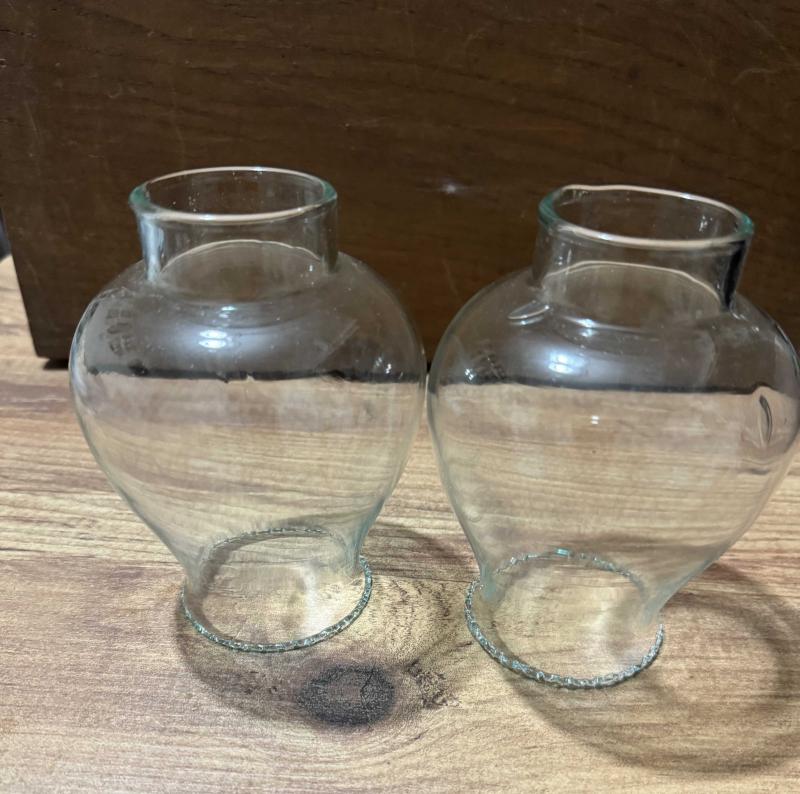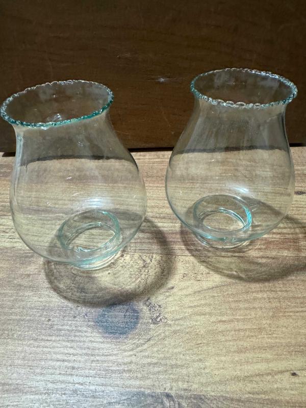 KUĞULU AVİZE,GAZ LAMBASI CAMI.ŞEFFAF RENKTE. (E.14)(Alt yuva çapı:5.00cm-h:13.00cm 2 Adet başlıklı antika/koleksiyon objesi Avrupa menşe’lidir. Objenin ait olduğu dönem bilinmeketedir.
