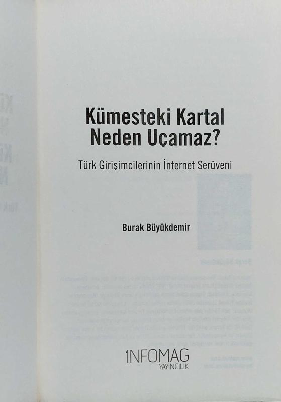KÜMESTEKİ KARTAL NEDEN UÇAMAZ? "Türk Girişimcilerin İnternet Serüveni", BURAK BÜYÜKDEMİR tarafından kaleme alınmıştır. Kitap 2010 yılında INFOMAG YAYINCILIK tarafından yayınlanmıştır. Satışta olan kitap, yayınevinin 2. baskısıdır. 173 sayfadır. KÜMESTEKİ KARTAL NEDEN UÇAMAZ? "Türk Girişimcilerin İnternet Serüveni" adlı eser Türkçe dilindedir.