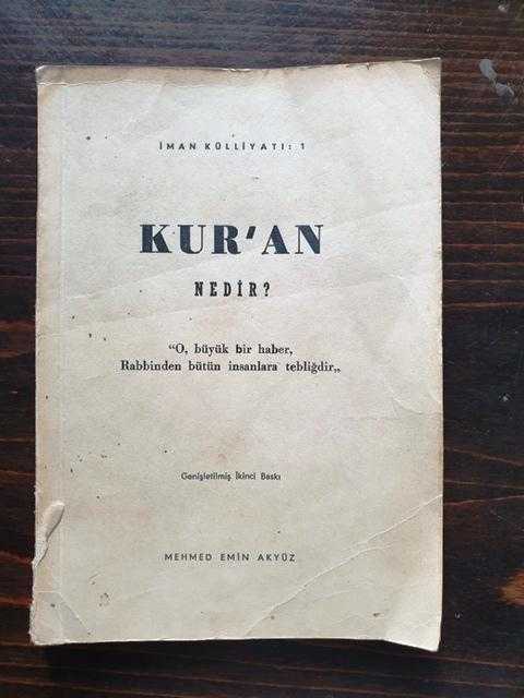 KUR'AN NEDİR, Mehmet Emin Akyüz tarafından kaleme alınmıştır. Kitap 1966 yılında Resimli Posta Matbaası tarafından yayınlanmıştır. 152 sayfadır. KUR'AN NEDİR adlı eser Türkçe dilindedir.