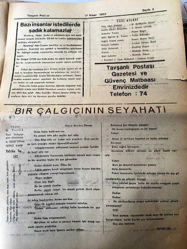 KÜTAHYA TAVŞANLI POSTASI GAZETESİ YEREL TAŞRA BASINI- 17 NİSAN 1962- YIL :13 SAYI :721- Bu Yol Uçuruma Gider -Maliye Bakanı Şefik İnan Bütün Vatandaşlar Vergi Verecek Dedi - Degirmisaz İşçisi sendikası kongresi olgun bir hava içinde geçti - Yalanlar Resmi Geçidi- İnönü işsizlik ile yakından ilgileniyor - Umut dünyası - Yurt Gazetecileri diyor ki : Çok doğru üstat -bu da bir fikir -Ona ne şüphe - Spor -Kütahya Şeker Spor Tavşanlıya Geliyor - Afyon Karması İle Gençlik Spor Revanş Karşılanması -, Kamil Güvenç tarafından kaleme alınmıştır. Kitap 1949 yılında [Güvenç MATBAASI ] yayınlanmıştır. 4 sayfadır. KÜTAHYA TAVŞANLI POSTASI GAZETESİ YEREL TAŞRA BASINI- 17 NİSAN 1962- YIL :13 SAYI :721- Bu Yol Uçuruma Gider -Maliye Bakanı Şefik İnan Bütün Vatandaşlar Vergi Verecek Dedi - Degirmisaz İşçisi sendikası kongresi olgun bir hava içinde geçti - Yalanlar Resmi Geçidi- İnönü işsizlik ile yakından ilgileniyor - Umut dünyası - Yurt Gazetecileri diyor ki : Çok doğru üstat -bu da bir fikir -Ona ne şüphe - Spor -Kütahya Şeker Spor Tavşanlıya Geliyor - Afyon Karması İle Gençlik Spor Revanş Karşılanması - adlı eser Türkçe dilindedir.