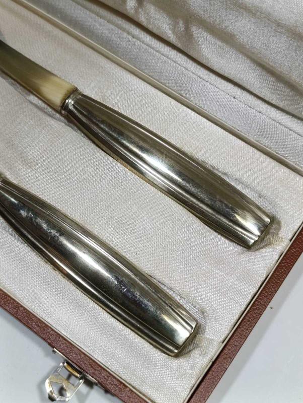 KUTUSUNDA GÜMÜŞ KAPLAMA SAPLI BOYNUZ YEMEK SERVİS TAKIMI ----15 başlıklı antika/koleksiyon objesinin menşei belirtilmemiştir. Objenin ait olduğu dönem bilinmeketedir.