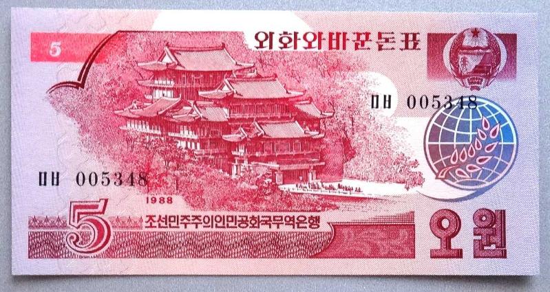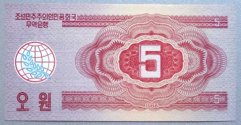 KUZEY KORE=1988 5 Won P-36 ÇİL' (Sosyalist Ülke Ziyaretçilerinin Kullanabildiği Para), dün satışa sunulmuştur.